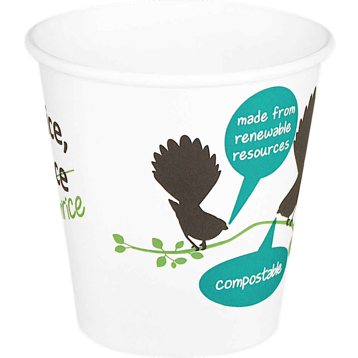 Hot Cup 6oz (230ml brim) Fantail Art PLA-lined – 7.9cm Lid